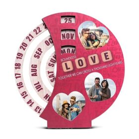 Lifetime Wooden 3 Photo Rotating Desk Calendar | Personalized Sublimation Photo Gift for Couples | Anniversary, Wedding & Valentine’s Day Gift for Husband & Wife