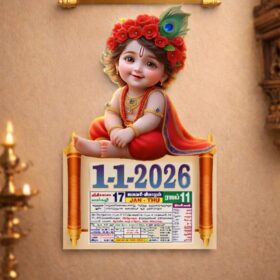 Lord Krishna Religious Wall Mini Calendar 2026, Tamil Daily Sheet Calendar