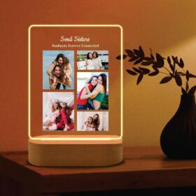 Customized LED Photo Frame for Sister | Personalised Photo Frame with Wooden Stand & Light | Special Birthday Gift for Sister | Transparent Tabletop Frame