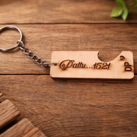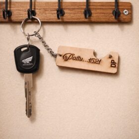 Personalized Wooden Rectangular Shape Key Chain with Your Name | And Friends Name |