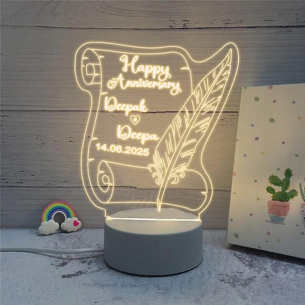 Personalized 3D LED Illusion Lamp for Couples with Name & Date – Warm White Light – Custom Romantic Gift for Anniversary, Wedding, Valentine’s Day & More