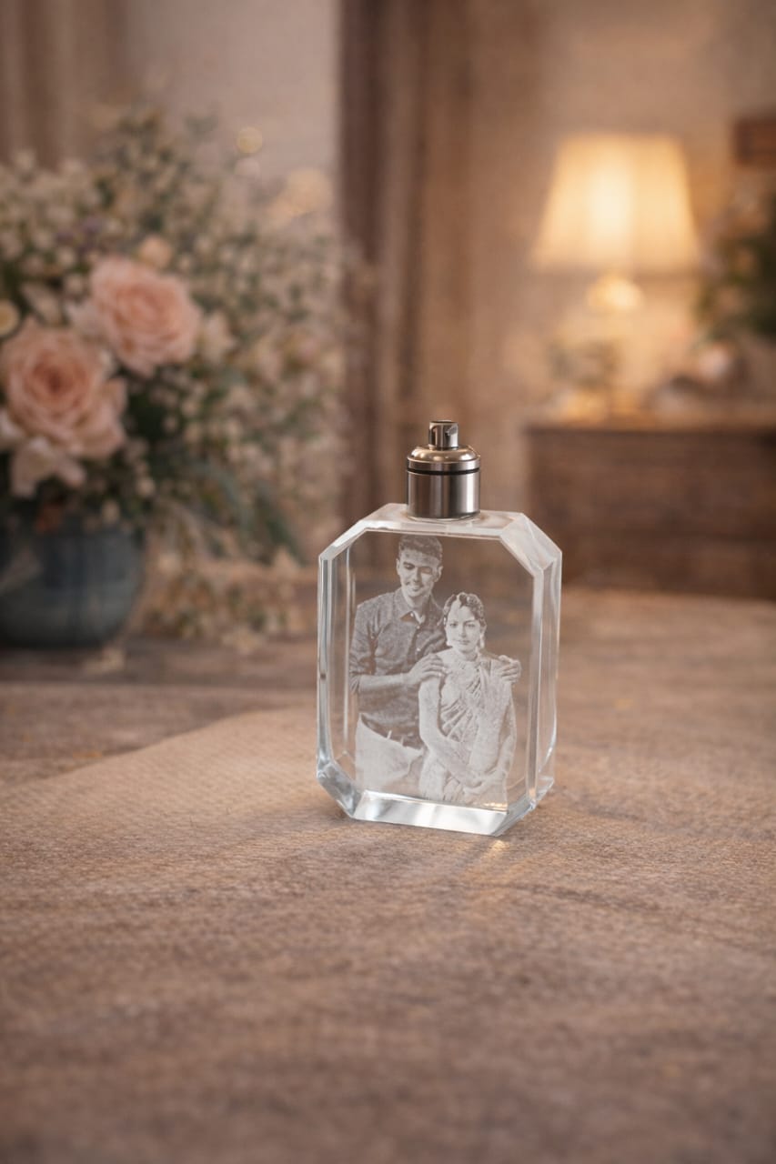 Engraving Style: 3Dlaser etched photo inside crystal